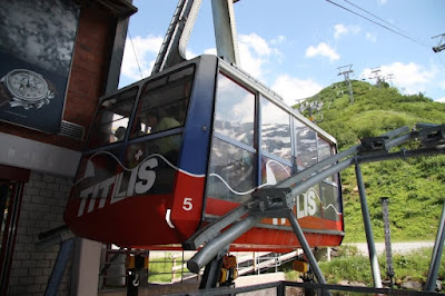 Enfrentando uma temperatura de mais de 30 graus (Suiça Tropical?) visitar a montanha Titlis foi uma experiência extraordinária, resgatou uma Suiça, cujas montanhas (nos Alpes) eternamente cobertas de neve fazem parte da identidade da paisagem. A Montanha Titlis, tem uma altura de 3,238 m e um sistema de teleféricos mais antigo porém eficiente. Para chegar lá no topo, você sobe em 3 estágios – até mil e pouco metros de altura, em "vagões" menores (até 4 pessoas), depois você faz conexão com outro – maior – que é o ônibus até mais ou dois mil e pouco e, finalmente, pega a cabine circular giratória que vai até o topo. Lá em cima, tinha neve sim – viva!